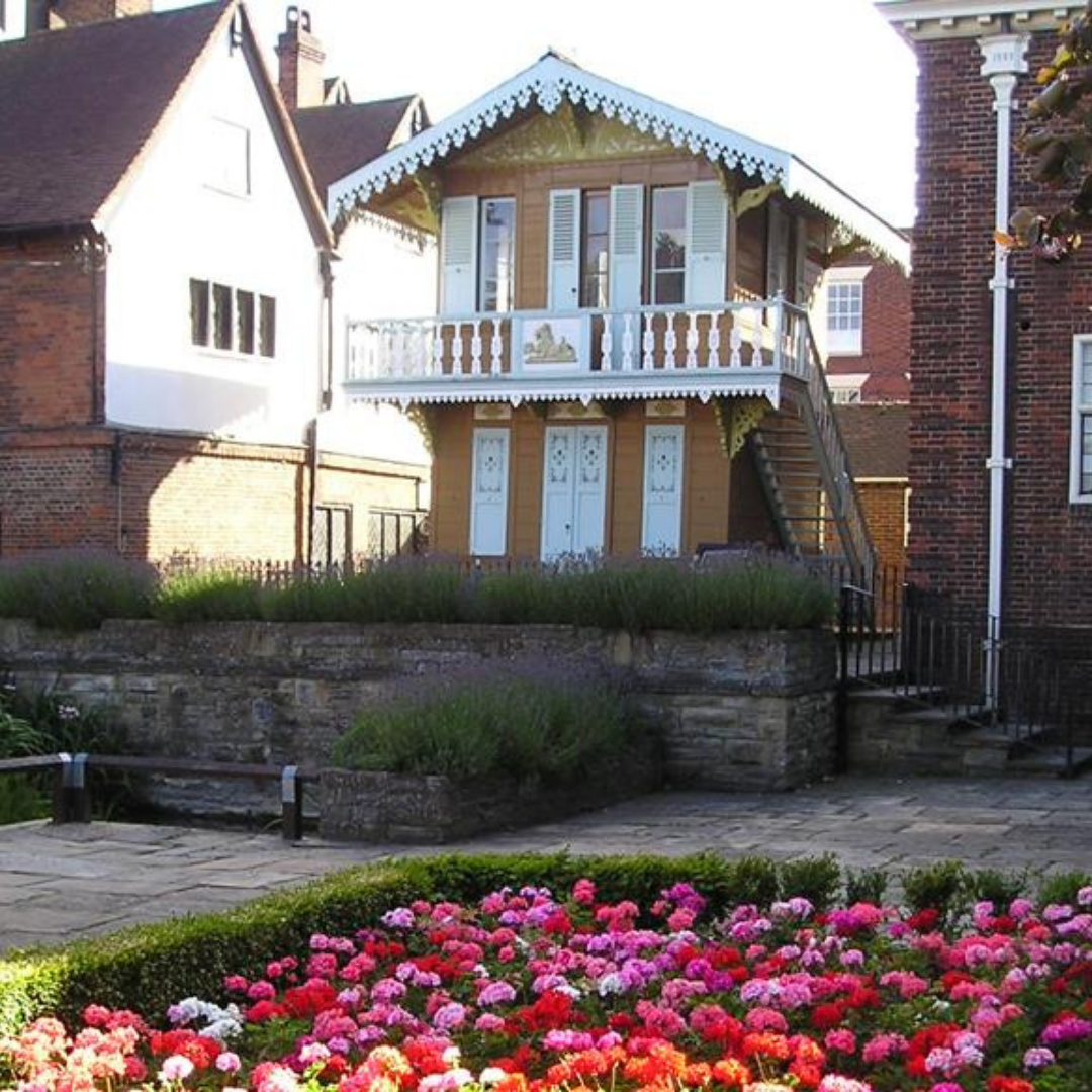 In the gardens of the house stands Dickens’ Swiss Chalet, used by the author as his study at his home at Gad’s Hill Place.