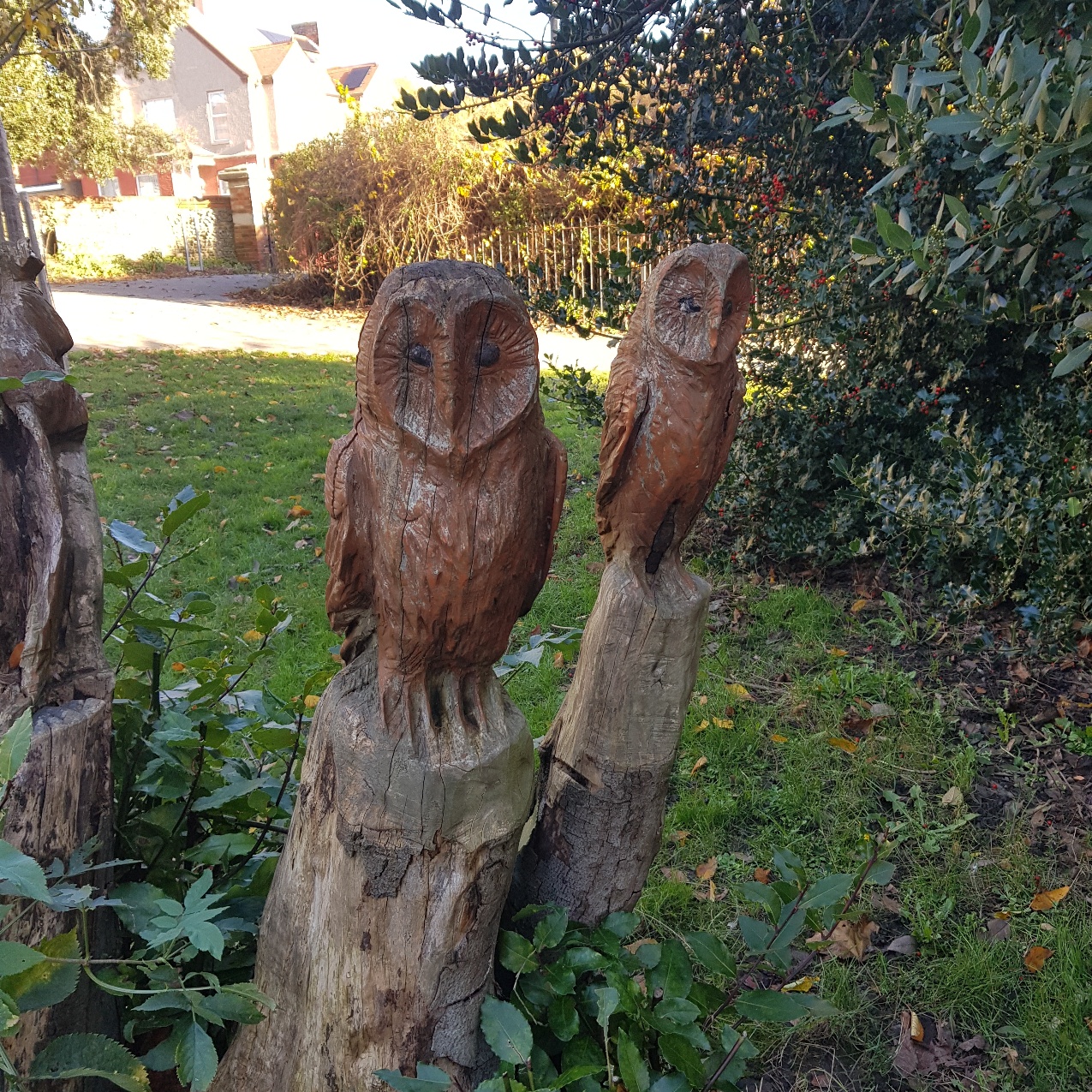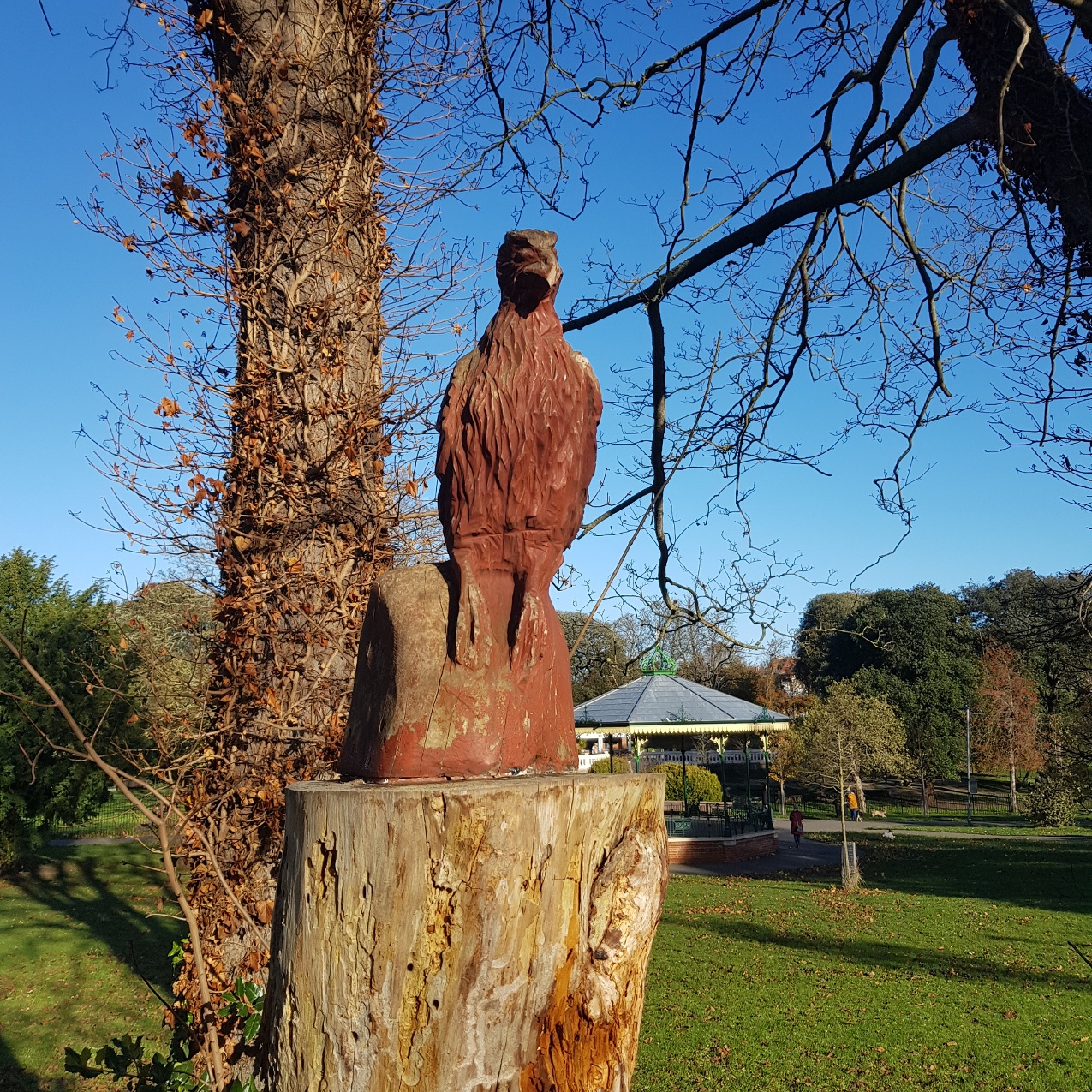 Wooden sculptures created in 2014 by Steven Andrews, Tribal Animal Chainsaw Carving using old tree stumps to create. Carved wooden sculptures to spot around the park