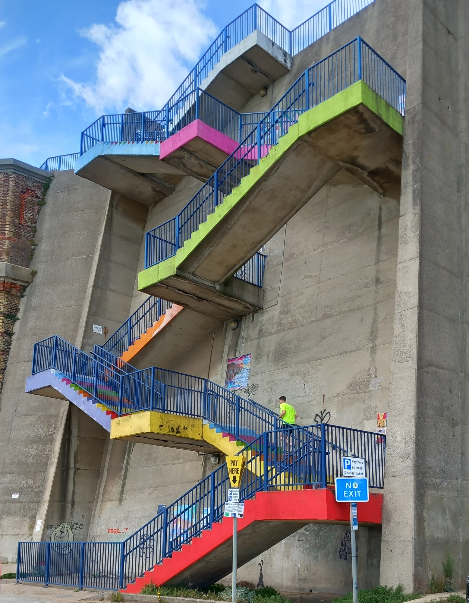 Officially called Augusta Steps, the 120 brightly coloured steps link East Cliff Promenade to the area by Ramsgate Tunnels below. The original Augusta Steps were built in the 1850s and after collapsing in 1947 were later replaced by the current steps in the 1950s/60s,